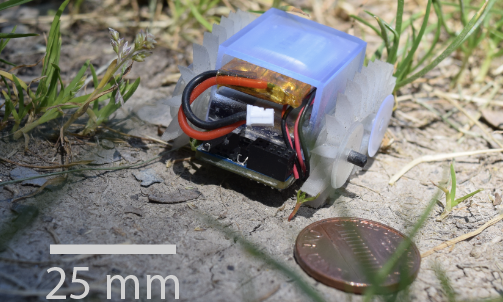 The Buffalo Byte is a small, highly mobile and autonomous millirobot platform that can move on non-smooth, natural terrain. The robot wieghs 11.35 g with an average runtime of 30 minutes with 100mAh battery.